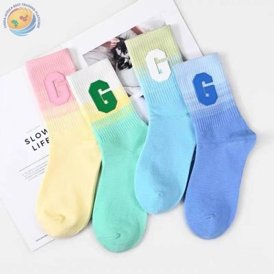 潮牌渐变G字母运动袜男女春夏季外穿扎染中筒袜