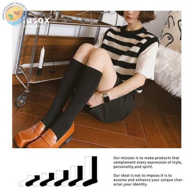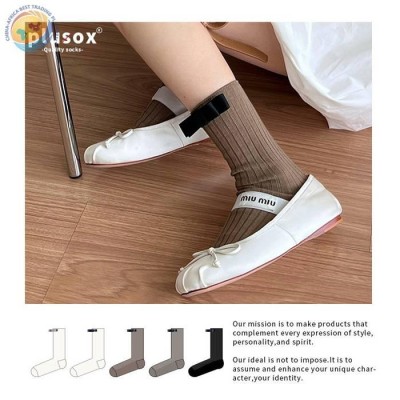 plusox春夏经典百搭少女蝴蝶结中筒袜针织miu风韩国小众堆堆袜女