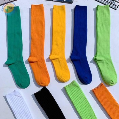 知足龙韩国风长筒情侣棉双针袜街舞滑板男女纯色运动长袜厂家批发