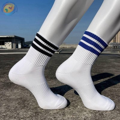 男中筒大码袜子加厚保暖毛巾三杆欧美街头篮球羽毛球运动潮长白袜