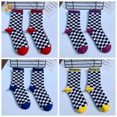 字母袜子男女日系街头滑板棋盘格中筒棉袜