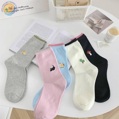 韩国袜子女ins潮女袜日系可爱小动物刺绣中筒袜