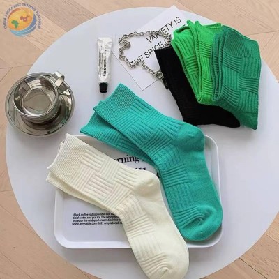 纯色中筒袜绿色纹理袜子墨绿色简约双针潮流男女
