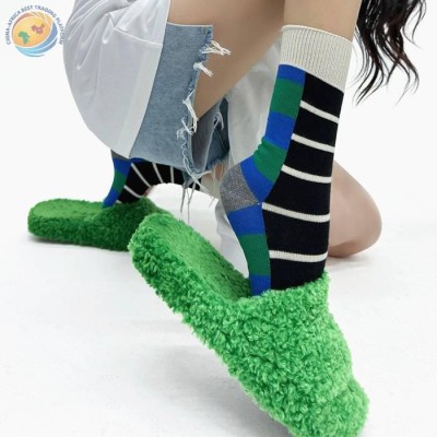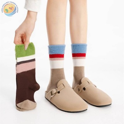 日系轻奢温暖貂绒毛毛袜拼色条纹肌理纯棉袜