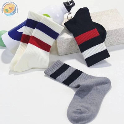 韩版红蓝两杠条纹情侣中筒袜学院风运动袜子