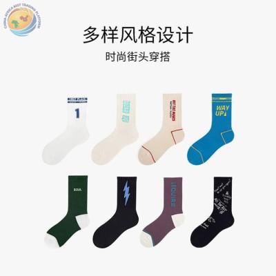 Socks for women ins Spring and autumn mid-tube socks for men simple letters Japanese street stockings