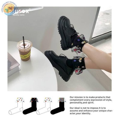 Socks for women\'s mid-tube socks ins trendy spring/summer thin Japanese flower hollow pile socks
