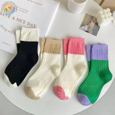 Socks women color matching tube socks spring and autumn pure cotton ins tide day system