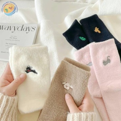 Japanese autumn and winter warm double needle socks in the tube pile pile socks women