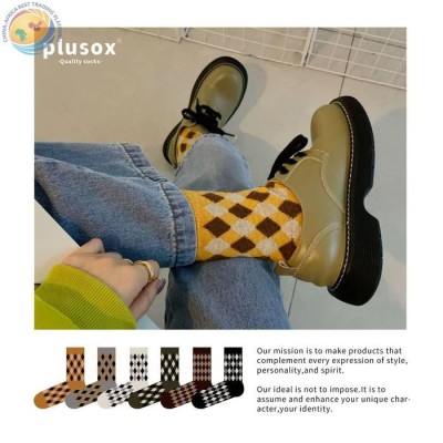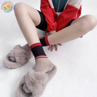 Men\'s and women\'s thick line matching color socks striped retro cotton socks