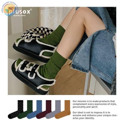 Japanese seersucker hemp pattern solid color vintage cotton mid-tube socks