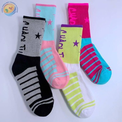Men's and women's socks match color striped tide street Europe and the United States hip hop thick towel skateboard basketball color long cotton socks