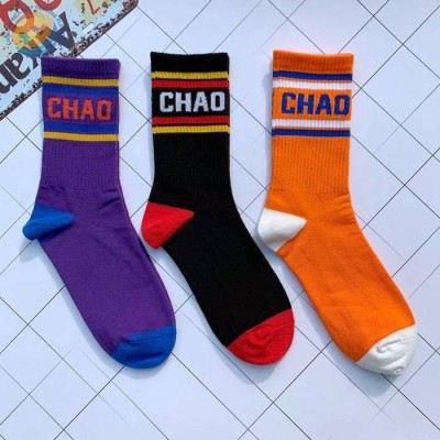 Mid-tube College wind letters skateboarding sport white wholesale long cotton socks