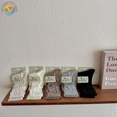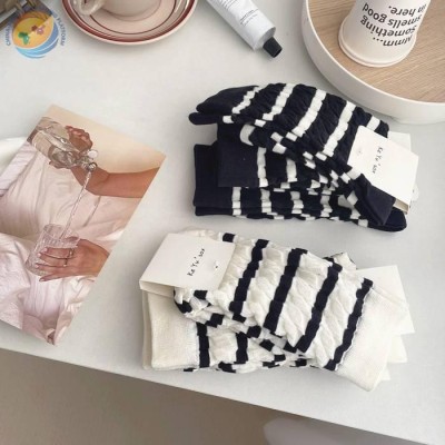 Japanese solid color thin ins cream seersucker socks vertical texture pure cotton pile pile