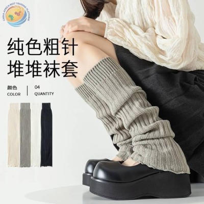 Autumn solid color knitted wooden ear edge millennial Spice y2k sock set leg set pile sock lady