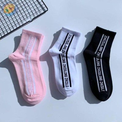 Short socks Fashion men's and women's midtube black and white pink street letters Preppy street skateboarding stockings wholesale