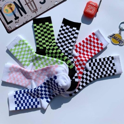 Checkerboard socks South Korean INS Chaoharajuku street hip hop skateboard midtube cotton socks