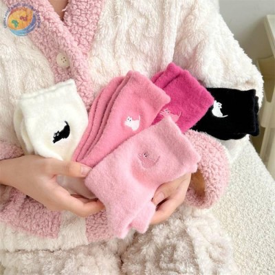 Australian cashmere cat embroidered socks women\'s winter thick warm pink mid-tube socks