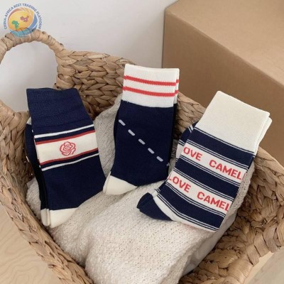 Japanese English style striped letter preppy style all cotton matching socks