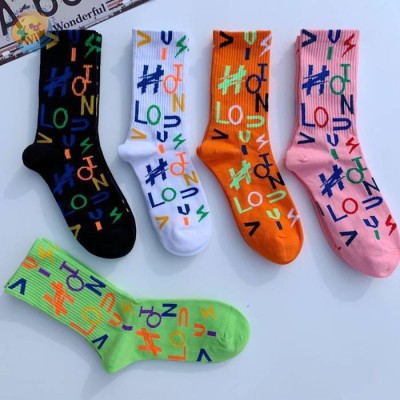 Socks men\'s and women\'s midtube fashion brand European and American street alphabet Harajuku long cotton socks