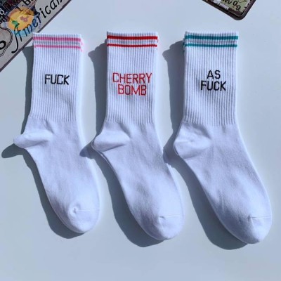 Hipster Instagram men\'s and women\'s midtube hip hop street English sports letter cotton socks