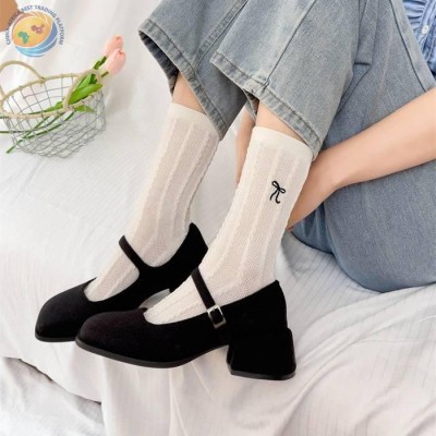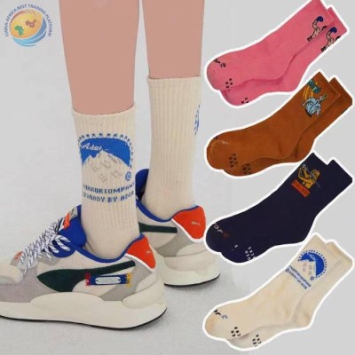 Socks women\'s mid-tube socks spring American cotton socks matching color fall and winter pile socks