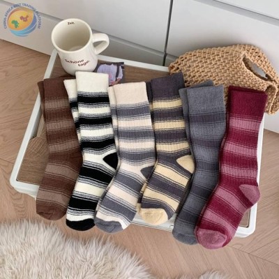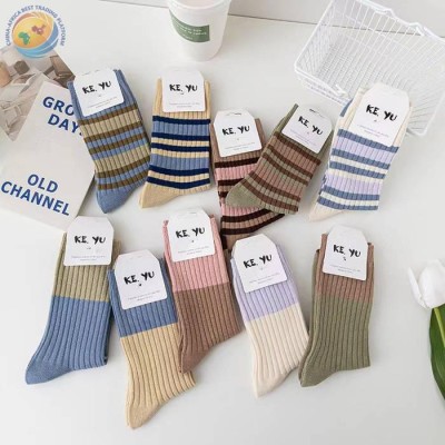 Double-pin striped color-matching socks autumn and winter cotton mid-tube socks
