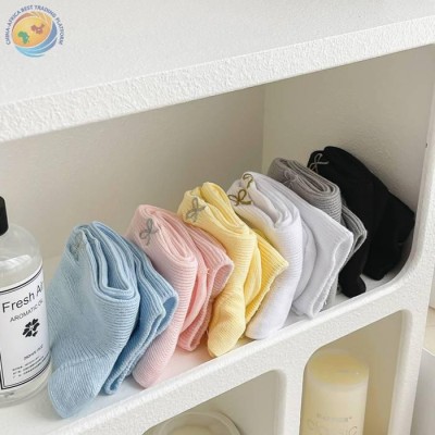 Japanese small fragrant women's socks solid color bow embroidery pile pile socks with summer thin breathable pure cotton socks