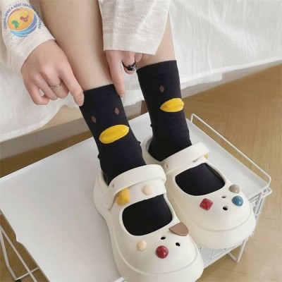 Spring and summer new European socks men's and women's fashionable socks Ugly three-dimensional yellow duck black and white cartoon cotton outer tube socks