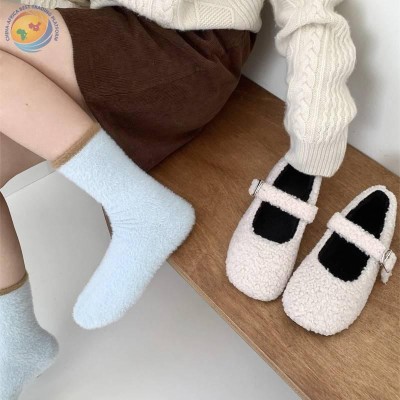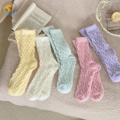 Soft waxy plush twist socks female autumn and winter plus wool thickened macaron girl