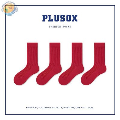 Autumn and winter double needle thick digital fabric label mid-tube socks big red socks