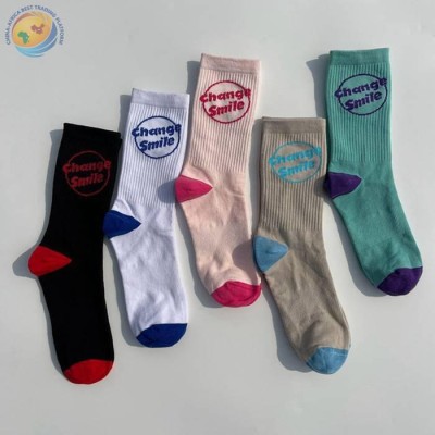 Instagram tide midtube socks embroidery couple men\'s and women\'s stockings smiling face Rainbow mentality Academy trend brand