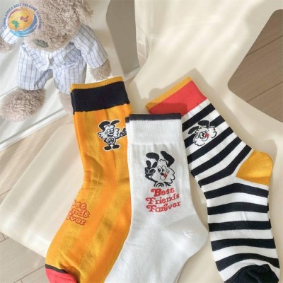 Dongdaemun cute cartoon scissor hands dog female socks street Korean striped letters pure cotton net red tube socks