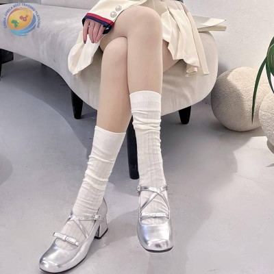 Japanese simple white calf socks women's summer thin sweet jk vertical stripe tube knee-high cotton pile socks