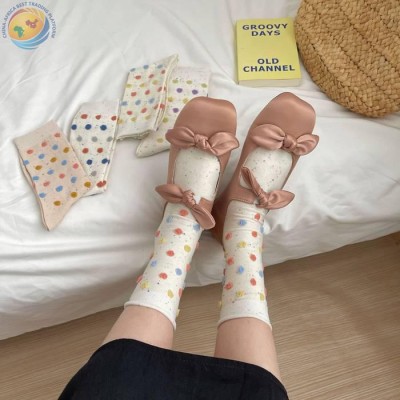 Spring and summer dots yarn socks women's mid-leg socks pure cotton Korean version of ins three-dimensional polka dot niche pile stockings