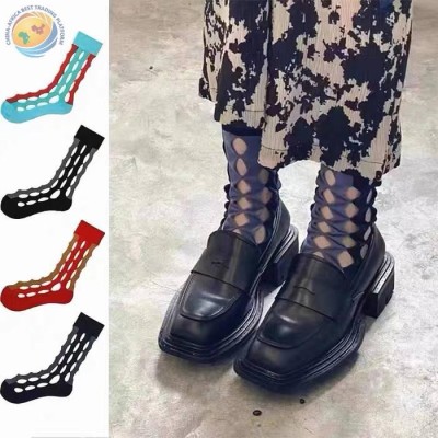 Japanese Queen sock hollowed out women's socks mesh color peacock blue black summer Saturn personality hole tube socks