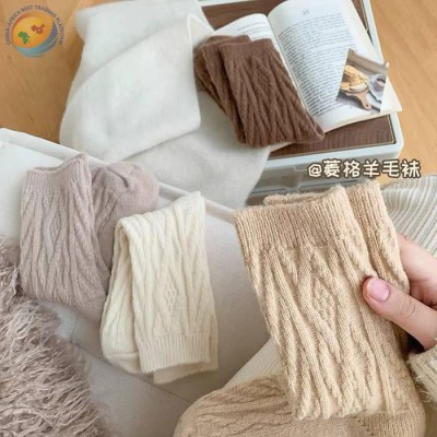 Autumn and winter socks Solid color wool socks winter warm thick pile socks
