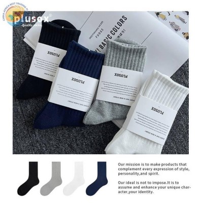 plusox 袜子男中筒袜春夏薄款纯棉螺纹ins潮流学院风运动男长袜女
