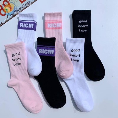 黑白色日系学院风欧美街头滑板字母网红棉长袜