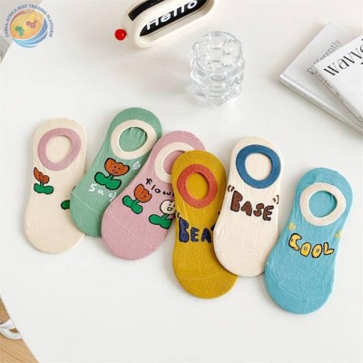 郁金香花朵船袜女~拼色少女后跟防滑点胶隐形袜字母短袜无骨潮袜