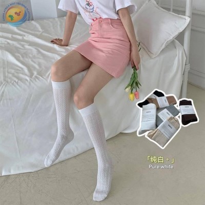 PLUSOX 春夏立体麻花镂空jk透气及膝袜小腿袜子女学院风日韩ins潮
