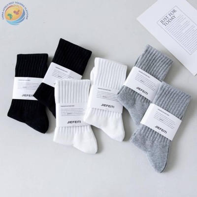 黑白灰纯色中筒袜男女春夏薄款纯棉螺纹ins潮流学院风运动长袜
