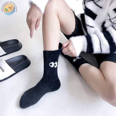 秋冬毛绒可爱大眼睛水貂绒纯色中筒地板袜