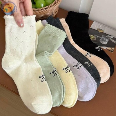 温柔奶油蝴蝶结袜子可爱镂空透气泡泡堆堆袜