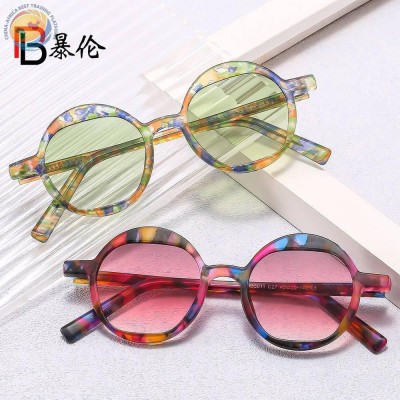 2023新款欧美时尚碎花圆框太阳镜防蓝光眼镜