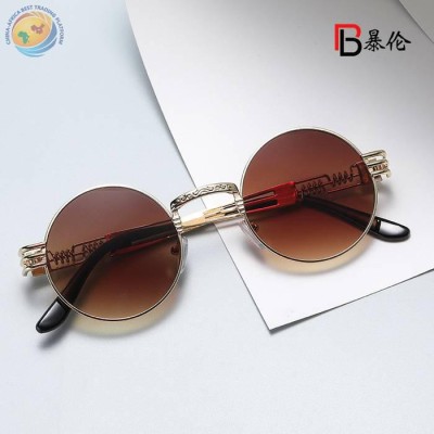 新款复古圆框蒸汽朋克太阳眼镜欧美经典防出游晒金属墨镜