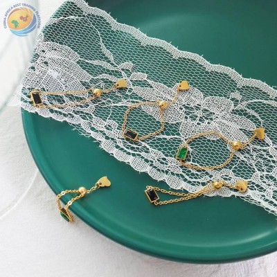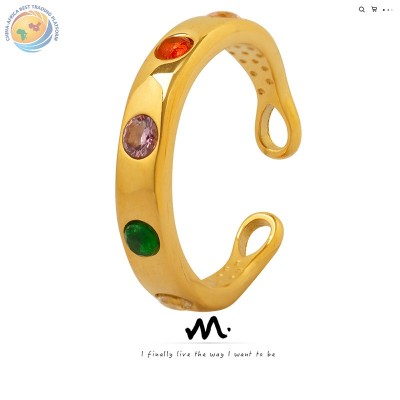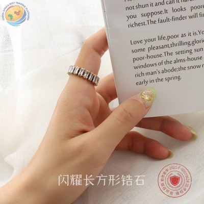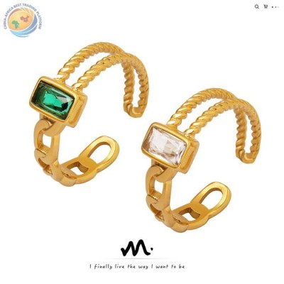 现货韩系ins风百搭潮流镶嵌绿白锆石开口戒指