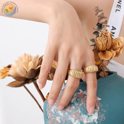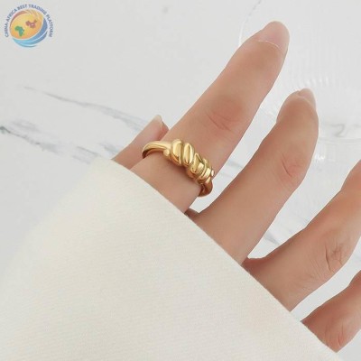 中古风新款个性复古光面钛钢镀金开口纹理戒指