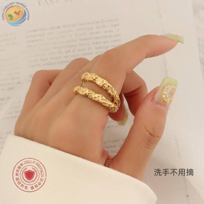 简约小众设计钛钢镀金不规则开口戒指高级感饰品