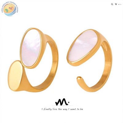 高级感轻奢小众时尚钛钢镀金白母贝开口戒指饰品女